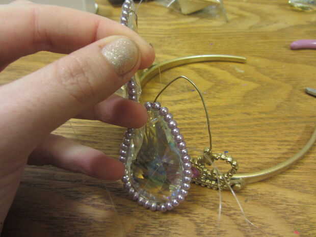 Su tiara está realmente empezando a tomar forma ahora! Recuerde, esto es la piedra de centro de ajuste bajo.