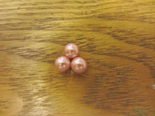 Hubo algunas grandes lagunas en mi tiara, por lo que tomé tres perlas rosa y atados en un nudo apretado. Automáticamente hará la formación de triángulo vista.