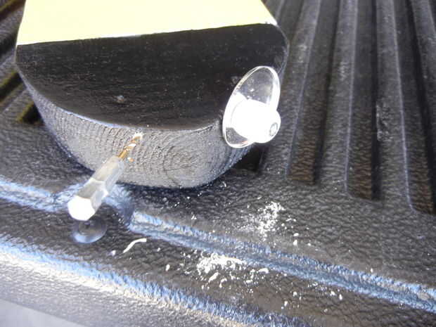 Para los ojos, usé dos cuentas de madera y volver a utilizar los extremos de algunos rollos prefabricados breadstick. Perfore un agujero justo en el borde de la cara de la abeja. Hacerlo en un ángulo para que pueda ver los ojos fácilmente si usted decide colgar su abeja en una cerca o al lado de tu casa.