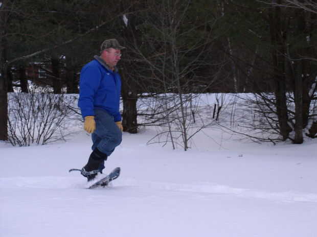 Asegúrese de levantar el dedo del pie de su raqueta mientras camina tan no para viaje. Como se puede ver cuando estás caminando, es la punta de la raqueta y la parte trasera cae al suelo. El talón está libre de las raquetas de nieve, mientras que el dedo del pie está plana contra el snowshoe. ¡ Disfrute!
