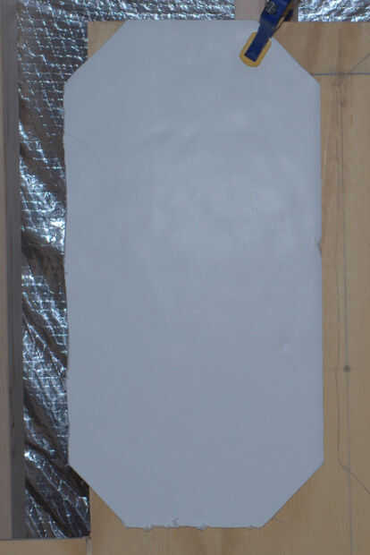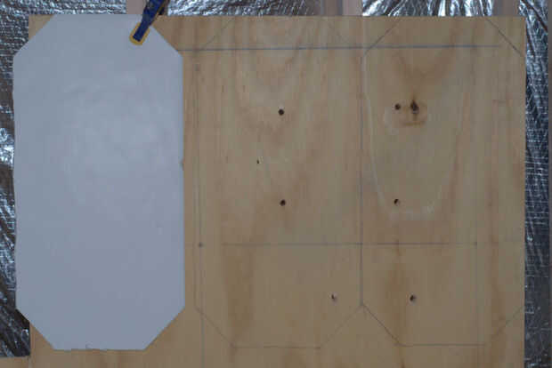 Remonta la plantilla sobre la madera contrachapada y corte. Usaba una sierra recíproca, pero habría bastado una caladora, sierra circular o incluso una Dremel.