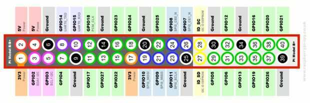 6. Conecte un botón al pin 17 y un conector de tierra en la Raspberry Pi y enloquecer! (Foto muestra pines GPIO para modelo B / B +) Foto de esto puede encontrarse en la carpeta AlexaPi frambuesa Pi.