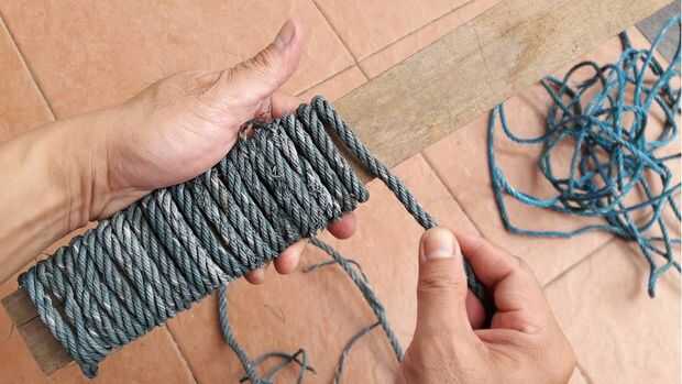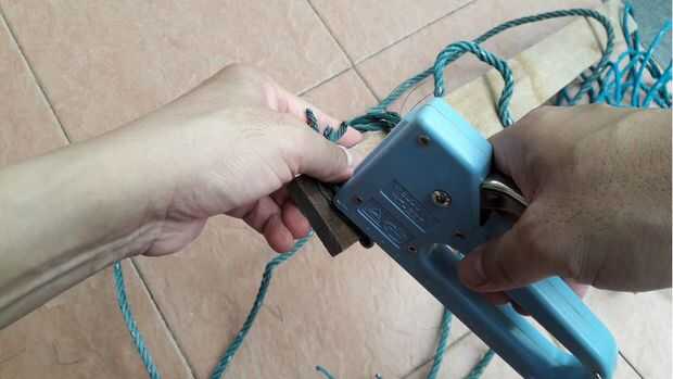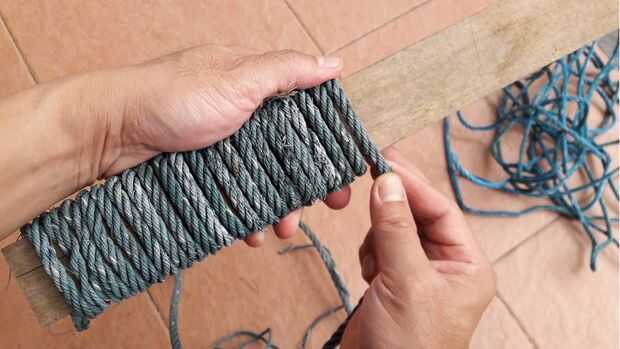 2. Entonces, envuelva firmemente la cuerda alrededor de la tabla.