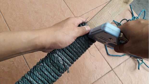1. En primer lugar, engrape el hilo de nylon en el extremo del tablón.