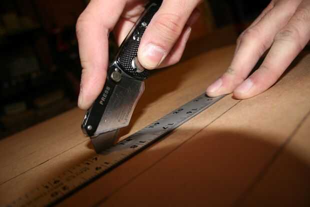 Una vez que se trazan sus líneas, usar su regla y cuchilla para cortar las piezas.