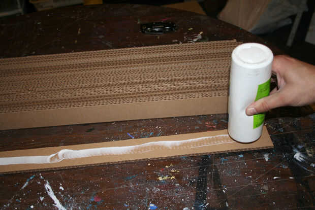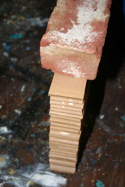 Encuentra algo pesado para poner encima de las tiras hasta que se seque el pegamento. He utilizado un par de ladrillos.