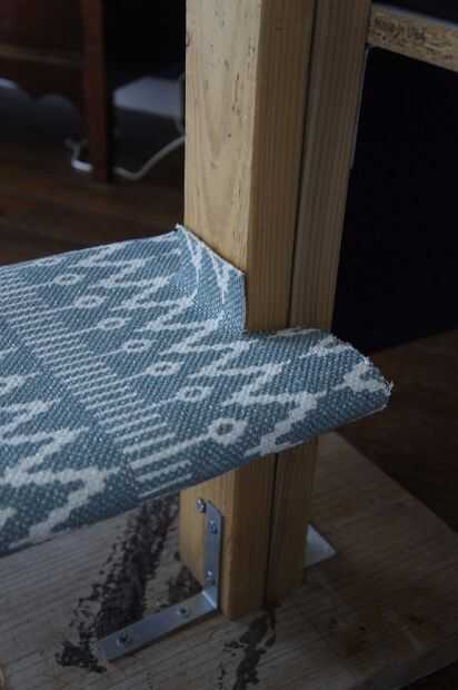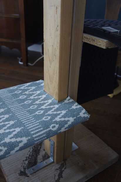 Cubrí la próxima plataforma de una manera similar como el estante superior. Sin embargo, lo necesito cortar un agujero en un lado para que ajuste tanto como sea posible contra el soporte de madera.
