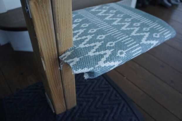 Para los bordes, trataron como si estaba envolviendo un regalo de Navidad. Me dobla los lados y luego dobla la parte superior hacia abajo. Luego usé una pequeña tira de velcro en la parte inferior de la plataforma para asegurar el doblez en el lugar.