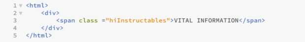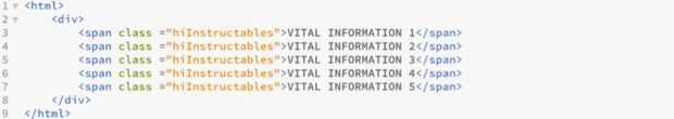 Podemos ver que la información que se encuentra en un span con la clase "hiInstructables". (Imagen 1) Resulta que sitios web es muy constante cuando un pedazo de información de etiquetado. Por lo que podemos suponer que si hubiera varias piezas vitales de la información que necesitábamos, etiquetados con la misma clase como este: (imagen 2)