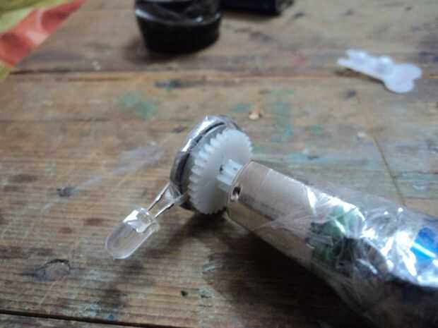 Usando join de pegamento la parte L.E.D en la parte superior del motor. Asegúrese de que el motor no está bloqueado con pegamento. Ante este problema :-(si tan entonces abierto y limpio la calota interior del motor y luego cierro todo otra vez.