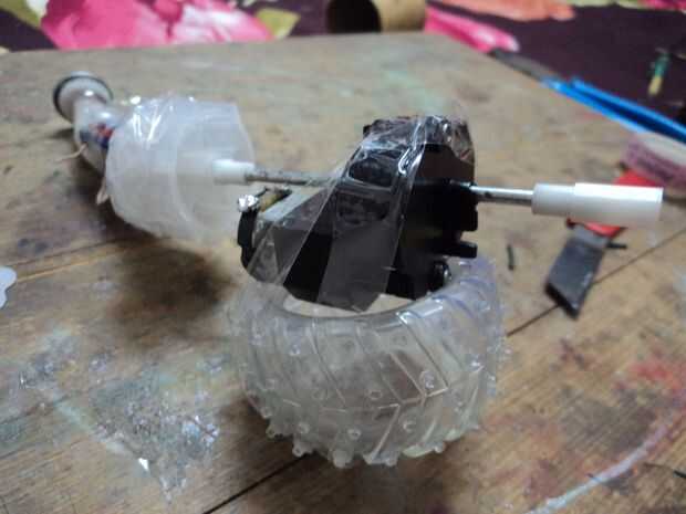 Utilizar cartulina o material similar para la fabricación de la correa y luego utilizando cinta adhesiva a la parte del coche a la correa. Mantenga una distancia segura para la instalación de todo correr libremente con estrellarse con la mano. Había utilizado la rueda para aumentar la distancia.