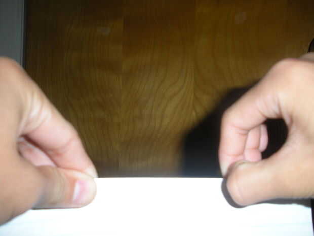Ahora, utilizar la uña y ejecutar a lo largo de la línea de doblez y exprimir. Doble el papel al revés y repetir.