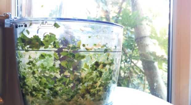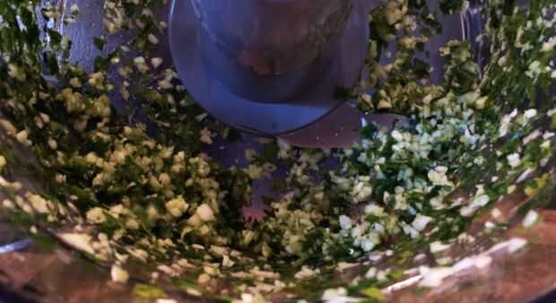 Pelar el ajo y añadir a un procesador de alimentos junto con el perejil y wiz hasta todo finamente. Derretir la mantequilla y mezclar junto con el ajo y el perejil. Para un tiro extra, agregue en un 1/4 de cucharadita de pimienta de Cayena.