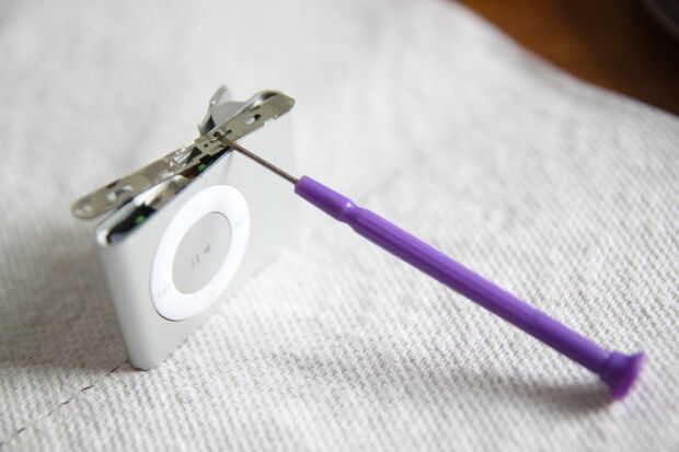 Ahora retire los cuatro tornillos de ambos lados de la iShuffle.