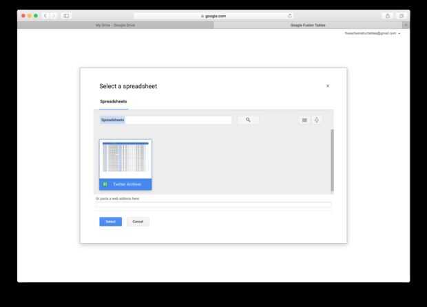 Paso 5: Crear una tabla de la fusión de Google y comenzar a importar al archivador de Twitter (parte 1)