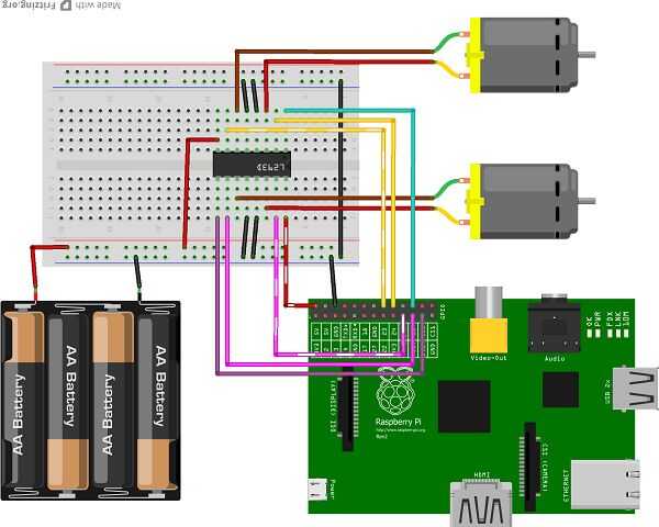 Por favor revise este tutorial para hacer conexiones en el protoboard usando IC L293D: TutsPlus