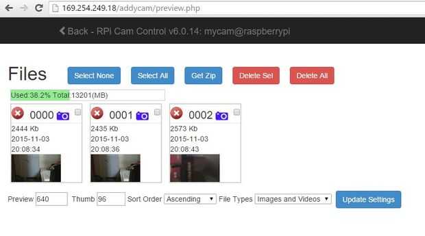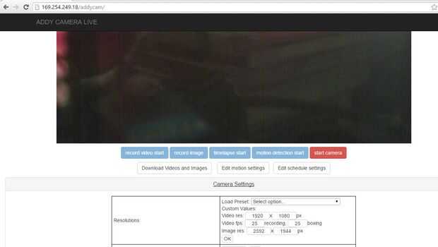 Soy control de interfaz de web de rpi que tiene características de la cámara:-