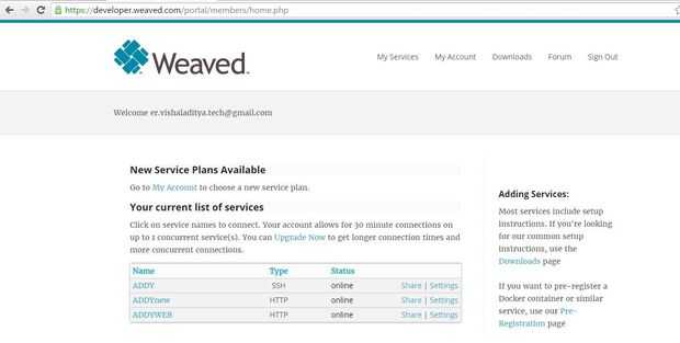 1. Abra su desarrollador tejida tablero: https://developer.weaved.com/portal/
