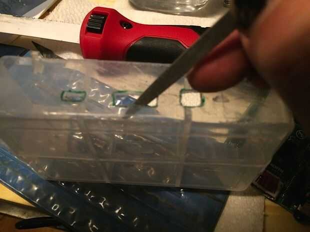 Fui pasante y archivos los bordes de los agujeros del puerto. El método de cuchillo caliente de cortar plástico no hace cortes recto limpio.