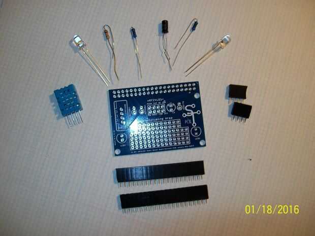 Este tablero tiene 10 piezas, es un trabajo de montaje muy simple. Probablemente la parte más difícil estará cortando las cabeceras hembra de 40 pines. Usted necesitará dos encabezados de 20 pines y dos cabezales de 4 pines, típicamente un perno en el bloque de encabezado es sacrificio, así que corte en el perno 21 para dar un 20 pines y un cabezal de 19 pines.