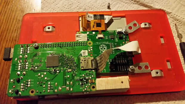 Así que empecé con sólo la pantalla, el Pi y una pantalla genial montaje que mi hermano también me dio. https://shop.pimoroni.com/products/Raspberry-PI-7-Touchscreen-display-with-Frame