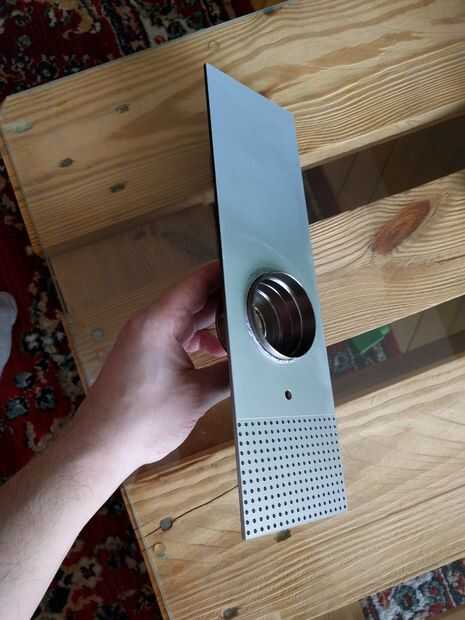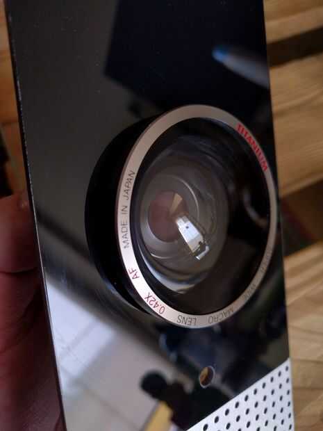 La parte delantera de la lente de la cámara también puede desenroscarse. Tomó algunos músculos, pero finalmente pude quitarlo. Usted tendrá que quitar para poder montar la lente a través de la abertura en la parte frontal. Una vez que está montado, puedes poner el cristal vuelva en piezas de la lente y vuelva a enroscar la tuerca superior.