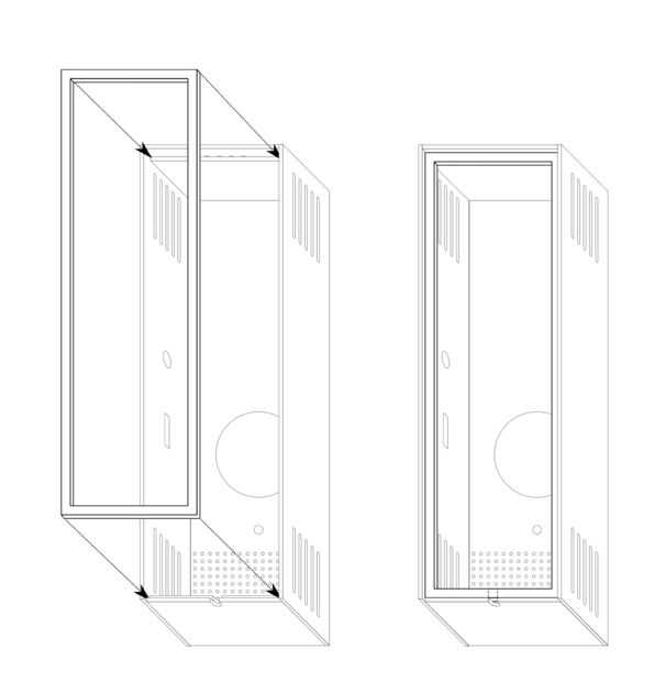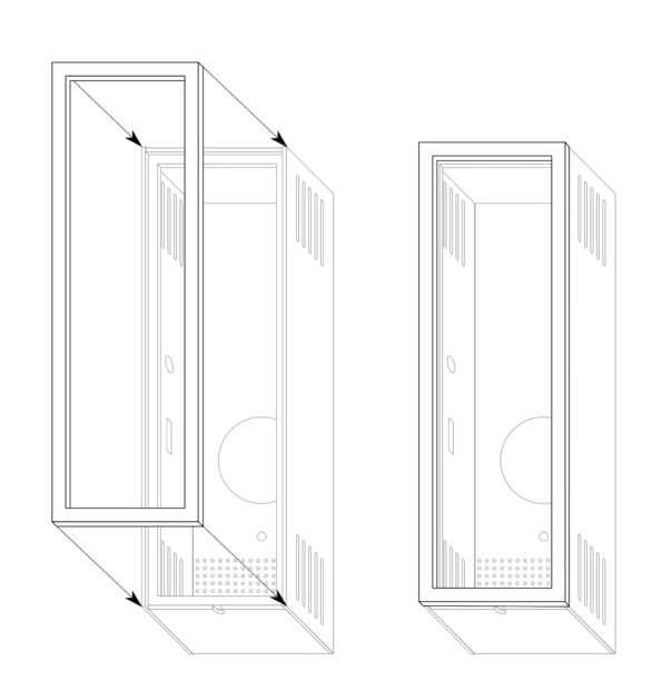 Una vez dentro marco está en su lugar, puede pegar el marco exterior (el más grande de los marcos del dos rectángulo) encima de la caja. Dejando suficiente espacio para la puerta corredera se deslice hacia adentro y hacia afuera.