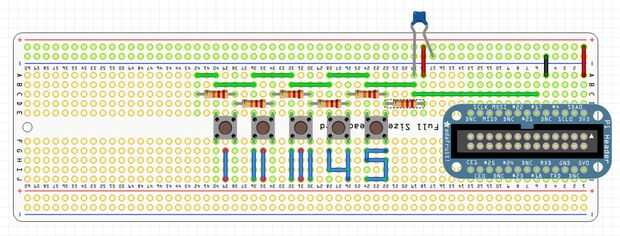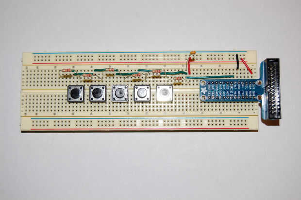 La idea es leer el resistanse differense entre ellos mediante resistencias.Los botones están conectados de manera tal que cada botón añade las resistencias de los botones de delante de él a un cuento por entregas hacia fuera puesto.Utilicé 4 220 ohm