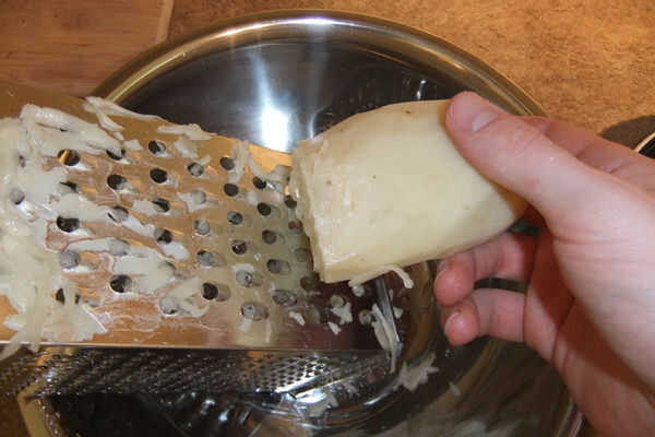 Paso 2: Destrozar sus taters- Siempre he usado un rallador de queso para esto pero probablemente hay otras herramientas que harían el trabajo igual de bien.