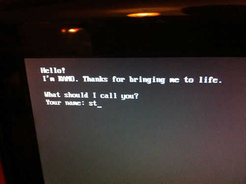 Ahora, enchufe en el poder y la magia sucede. Debería ver una pantalla de texto básico en primer lugar con unas pocas indicaciones. Nombre de usuario creación y difusión de una bomba (no, en serio). Luego pasará al configurar tu red WiFi y hacer las actualizaciones que necesita. Esto podría tomar minutos a horas dependiendo de las actualizaciones necesitadas y la velocidad de su red. Finalmente sobre la carne...