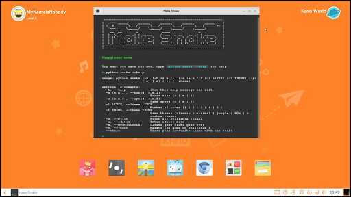 Hay algunos programas ordenadas sobre el SO de Kano. Siendo la versión de Minecraft específico para el aprendizaje de codificación el favorito de mi hijo. Puede colocar unas pocas líneas de código para que sea construir algo sin tener que colocar los bloques. Trata de accesos directos por lo ama. También viene con Pong y la serpiente, los cuales tienen la opción de código de tus propias reglas para el juego. Hay también rasguño, que te ayuda a aprender algunas líneas básicas de codificación para hacer tareas sencillas con imágenes y audio. Todo en Kano es bastante autoexplicativo con programas individuales. Todos ellos proporcionan pasos sobre cómo empezar. Hay nuevas aplicaciones ser liberados para todo el tiempo, por lo que tiene una buena manera de crecer con su niño para mantenerlos interesados. Si son cualquier cosa como el mío necesitan un montón de cosas nuevas para mantener su interés. Las posibilidades son infinitas cuando se puede codificar todo lo que quieras.