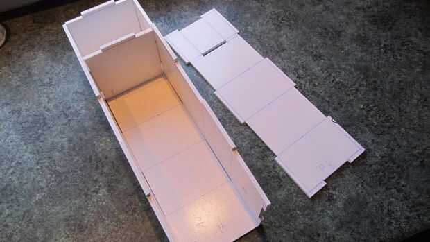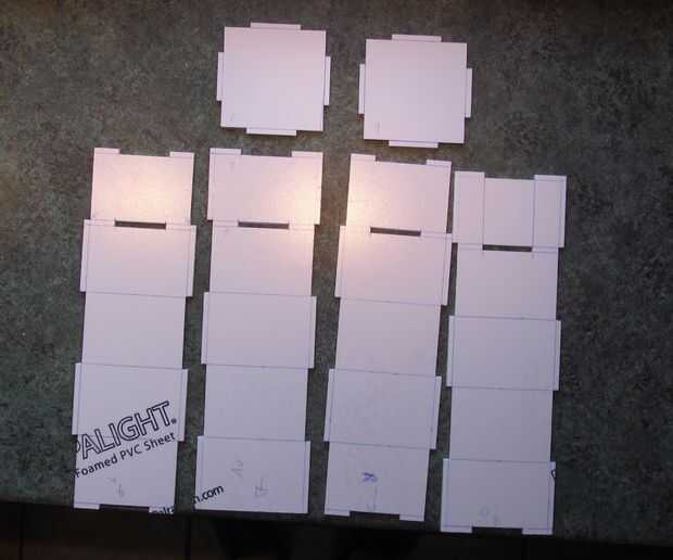 Para construir la vivienda (350mmx110mm), usé hojas de PVC de 5mm de espuma.