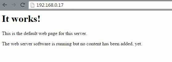 Introduzca la dirección I.P. de la Raspberry Pi en su navegador web. Debería ver una página simple que dice "¡ funciona!"