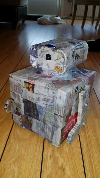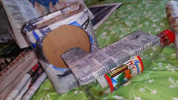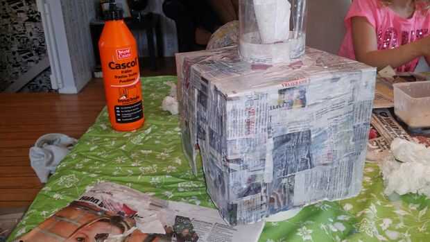 Entonces utilicé algunos residuos mache papel y cartón y después de algunos pintan. Para el cuello utilicé una botella de cola de Coco. Una vez más, ver mis fotos!