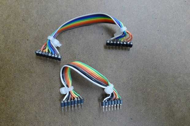 7. Haga dos series de cable utiliza los conectores de cable y mujer de la cinta. Uno debe tener 7 alambres, el otro 8. La soldadura de los extremos pelados del cable en el extremo hembra de la cabecera.