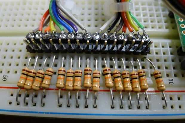 6. Inserte una resistencia de 10K para cada uno de estos encabezados y conecte a tierra.
