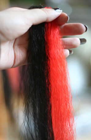 Lo primero es lo primero. Toma tus dos secciones iguales de pelo y ponerlos juntos, como veis en la foto 2. Alinee los fondos de las secciones entre sí todo lo que pueda para que salgan hasta el final. No tienen que ser perfectos, simplemente los ponen al lado.