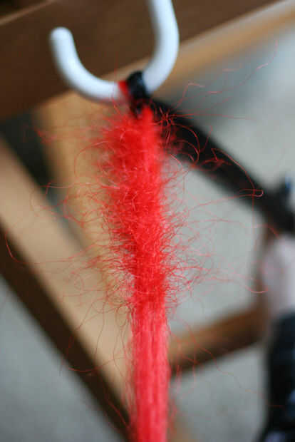 Primero vas a separar los dos colores diferentes unos de otros, (pic. 1.) no tiene que ser perfecta separación, si estaba más cerca de mi cámara se podía ver que algunos filamentos rojos son en negro. No importa en el largo plazo.