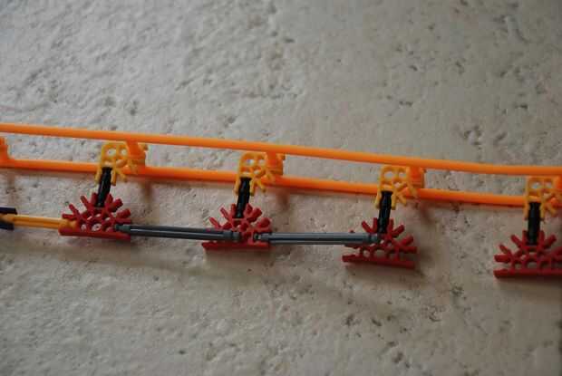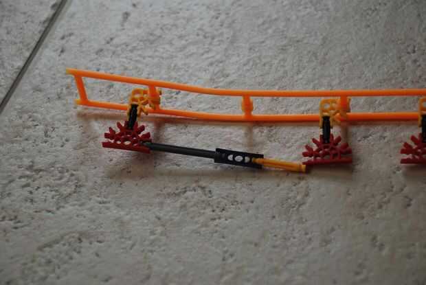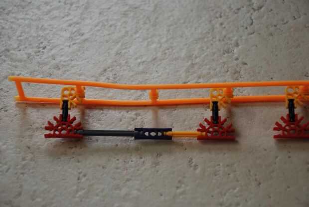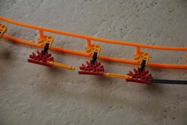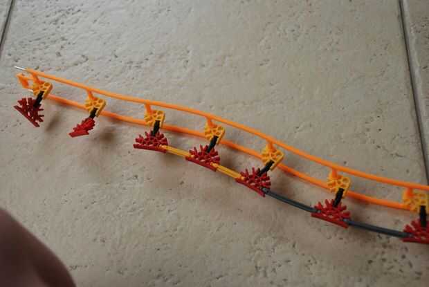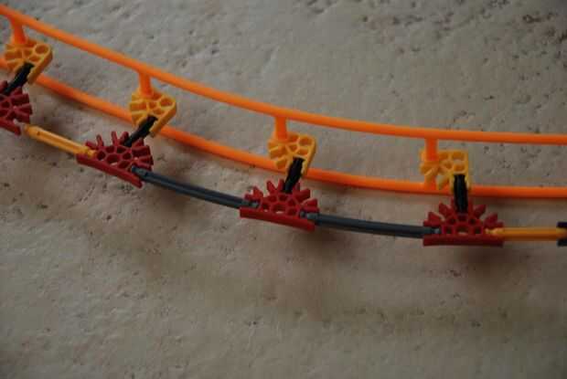 -Si usted tiene un montón de piezas Coloque la pista en cada conexión. Sólo una cada dos conexiones si no tienes bastantes piezas. Fijar cada dos conexiones es bueno para el recto pero si se hacer curvas su rojo conectores relajará su control sobre las barras.
