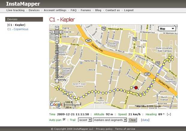 Ahora tienes un GPS personal tracking sistema basado en el teléfono poco allí. Puede iniciar sesión en InstaMapper y ver una pantalla como la siguiente.
