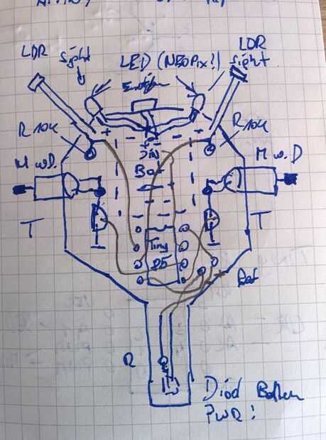 Después de eso empecé a dibujar algunas ideas en mi cuaderno. Para ser honesto la primera cosa que hice parpadeaba un LED that´s como siempre un buen comienzo para comprobar si está funcionando su configuración/herramientas. También probé un registrador de temperatura y humedad con DHT22 y SoftwareSerial. Fue muy difícil porque las librerías de DHT son principalmente para el reloj de 16Mhz (si va a hacer algo como eso, Compruebe cómo prescale el internalclock). Pero he decidido mostrar algo es, bueno, solo más divertido.