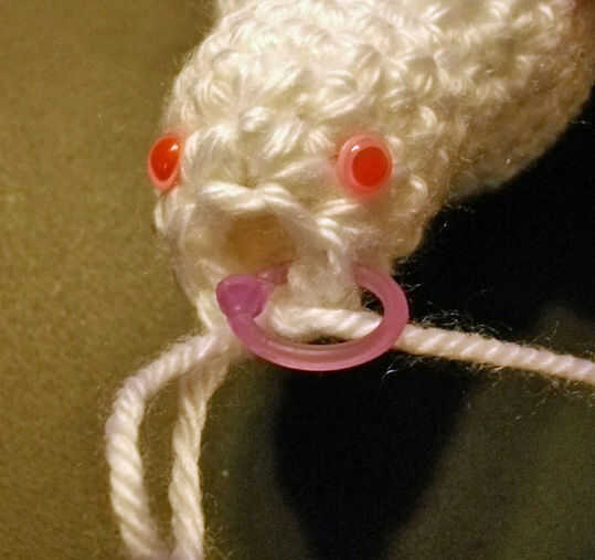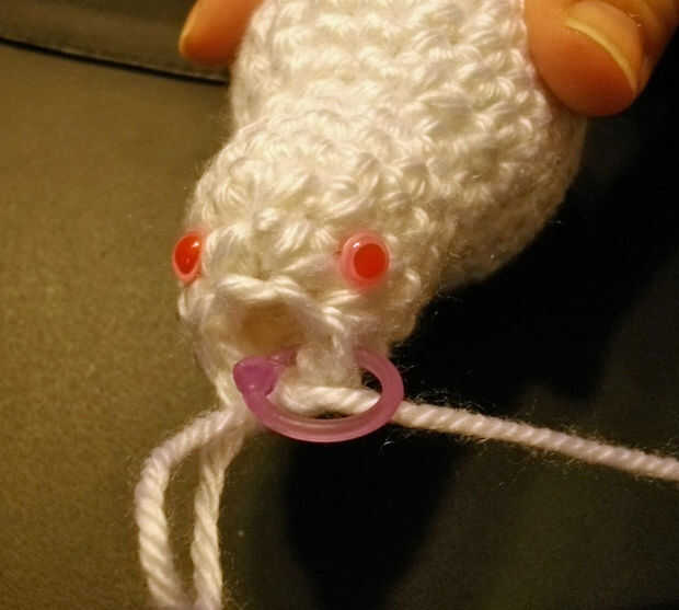 RND 20: Sc2tog 2 veces. Fije apagado dejando una cola bastante larga para coser el final para ver como la punta de la nariz del ratón, la armadura final y para cubrir los orificios causados por el sc2tog.