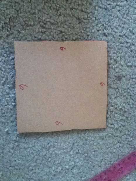 Tome el pedazo de cartón y cortarlo en 6" por 6" cuadrado. No tiene que ser perfecto porque cuando se traza sobre la tela que incluso fuera un poco.