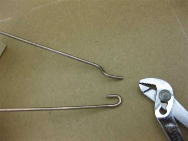 Tapa es un cable estándar que fija la trampa, he utilizado unos alicates pequeños para crear un patrón de C en el extremo (cable mostrado en la parte inferior).