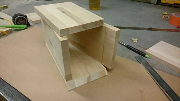 A cortar todas las piezas a medida. Las medidas no tienen que ser en (longitud: 27 cm, ancho 13 cm, altura 17 cm) pero asegúrese de obtener un borde recto para que no tenga cualquier tapas durante el montaje. Cuando usted tiene lados, arriba y abajo entonces es tiempo para trabajar en la puerta. Tómate tu tiempo al hacer esto, porque no puede ser demasiado flojo o demasiado apretado.