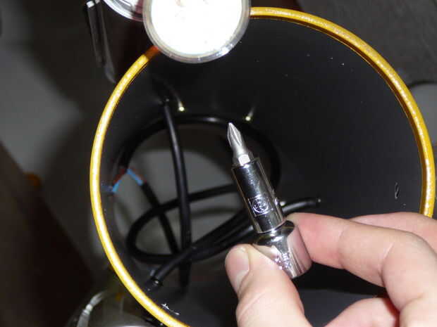 Realmente visible es el segundo tornillo que detiene el mango de giro alrededor de su eje. Con unos simples negritas y anillos esto fue cabido muy fácilmente. No hay problemas...