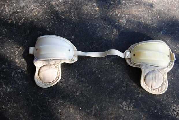 Usé un casco de bateo con el borde cortado, con una visera de hockey para el casco.