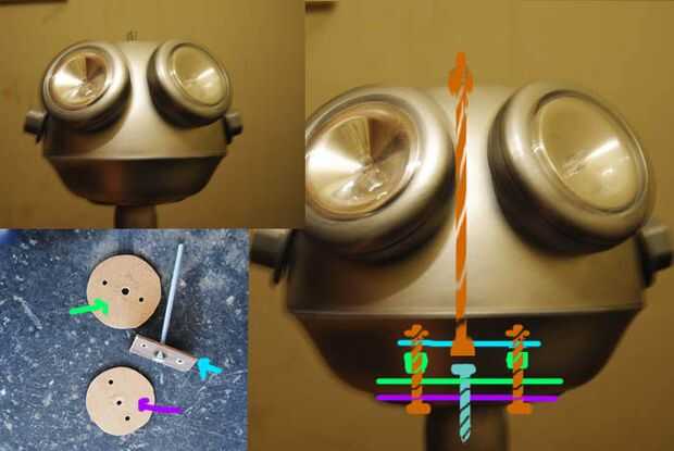 Para mantener accesible que tenía que permitir el acceso dentro de la cabeza, así que pegué los dos tazones de fuente junto con un tornillo muy largo que yo esperaba iba a través de todo el camino, pero era un poco corto, así que agregué un nuevo soporte interior y mantiene la tuerca de mariposa arriba de la cabeza para facilitar el acceso a los pernos de los ojos. Este error resultada para ser útil, puesto que no estaba en el camino de la fijación del cuello luego (¡ yay de mala planificación que ayuda!)