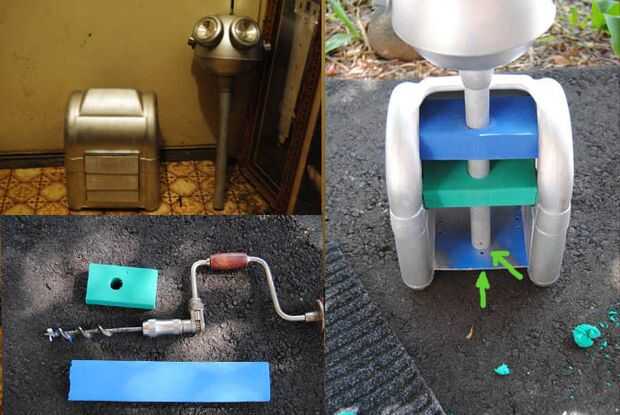 Después de tarareo y balbuceos durante unos días, descubrí poco duro bloque de espuma que había recibido en venta de garaje que era 2 pulgadas de espesor. Planeaba a perforar los agujeros a través de varias piezas y luego les pega, pero cuando juega con que uno se atascó cuando pongo de costado! Eureka!