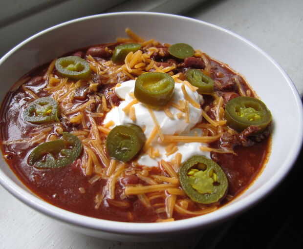 Esta es una receta de Chile mi novio y yo se acercó con - es agradables y picante sin ser abrumador gracias a adicional de un habanero entero y tiene un agradable verduras/frijoles al cociente de la carne. También es perfecto para perros Chile! De Chile en polvo le da un color bonito y hace sabrosa sabrosa.